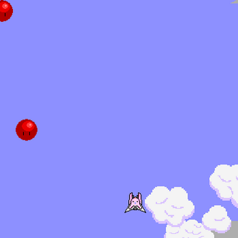 Controls are cursor keys and spacebar to move and fire, and R to restart the alpha. There's no title screen, or pause screen, or powerups, or health pickups, or boss, or ground turrets, or other weapons, or real content, but there's five types of enemy wave to get through, three distinct enemy ships, and one recoloured enemy drone.